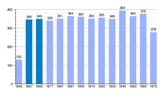 Población de derecho según los censos de población del INE Población de hecho según los censos de población del INEEntre el censo de 1857 y el anterior, crece el término del municipio porque incorpora a Fraella |