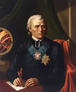 Marcin Odlanicki Poczobutt, con las condecoraciones de la Orden del Águila Blanca. Retrato obra de Józef Oleszkiewicz | ||