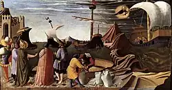 ![]() Marco Polo llegando a Ormuz. Miniatura del Libro de las maravillas, presentada en la cubierta de la edición francesa, y de la edición en castellano publicada por Aguilar. | |||||