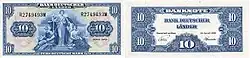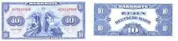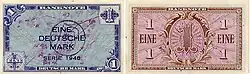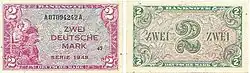 La primera serie de billetes fue emitida en 1948 bajo la soberanía de los aliados occidentales. La forma de los billetes era muy parecida a la de los dólares estadounidenses.
