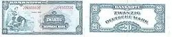 En la zona ocupada por los soviéticos, que más tarde conformaría la República Democrática Alemana, se introdujo unos días después el marco de la RDA al utilizar sellos especiales en los antiguos Rentenmark y Reichsmark para evitar así la entrada de billetes desde el oeste. En julio de 1948 se imprimió una nueva serie de marcos de la Alemania del Este.
