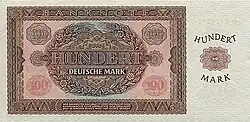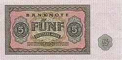 El 24 de julio de 1948 fue puesta en circulación una nueva serie de billetes conocida oficialmente como Deutsche Mark von der Deutschen Notenbank hasta 1964.