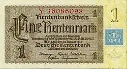 Los billetes reeditados de Reichsmark y de Rentenmark con las estampillas adhesivas fueron quitados de circulación por los billetes rediseñados el 24 de julio de 1948, en denominaciones de 50 Pfennig, 1, 2, 5, 10, 20, 50, 100, y 1000 Marcos alemanes de Deutschen Notenbank (DM).