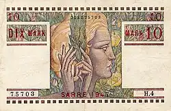 La serie estaba compuesta por seis billetes con las denominaciones de 1, 2, 5, 10, 50 y 100 Marcos. El objetivo de su introducción era preparar una unión económica con Francia. Además, el intercambio sirvió a la administración francesa para obtener un panorama de la cantidad total de capital disponible en la región del Sarre.