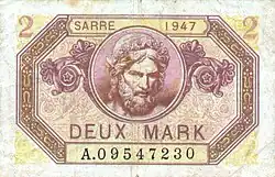 El marco del Sarre fue una moneda alemana, creada para sustituir al Reichsmark. Fue puesta en circulación en el año 1947 por un corto tiempo, ya que fue sacada de la circulación en 1949. La moneda circuló en el entonces autónomo Sarre. Tuvo paridad con el marco alemán. No se han emitido monedas para esta unidad monetaria.