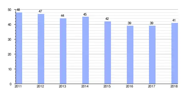 | Gráfica de evolución demográfica de Mareque entre 2011 y 2018 |