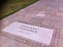 Margaret Hilda Thatcher (AFI: [ˈmɑːgɹət ˈθæʧə]; de soltera Roberts; 1.ª baronesa Thatcher de Kesteven; Grantham, Inglaterra, 13 de octubre de 1925-Londres, Inglaterra, 8 de abril de 2013)[2] fue una política y estadista británica que ejerció como primera ministra del Reino Unido desde 1979 a 1990, siendo la persona en ese cargo por mayor tiempo durante el siglo XX y la primera mujer que ocupó este puesto en su país. Su firmeza para dirigir los asuntos de Estado, su estricto dominio sobre los ministros de su gabinete y su fuerte política monetarista le valieron el sobrenombre de "la Dama de Hierro". Como jefa de gobierno, su llegada al poder supuso una completa transformación del Reino Unido al apoyar la privatización de empresas estatales, de la educación y de los medios de ayuda social. Sus políticas liberales llegaron a ser conocidas como thatcherismo.[3] También estuvo marcada por su fuerte euroescepticismo, su total oposición a la transferencia de más competencias ejecutivas de gobierno a la Comisión Europea y a la creación de la moneda única.[4]