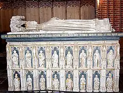Su cuerpo fue enterrado primeramente en la localidad danesa de Sorø. En 1413 sus restos fueron trasladados a la catedral de Roskilde, cerca de Copenhague, donde se le rindió un suntuoso funeral. En 1423 se levantó en su tumba un grandioso monumento de alabastro, de estilo gótico, ricamente adornado y coronado con una estatua yacente de la reina.