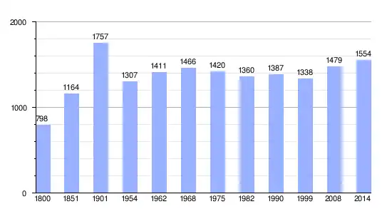 | Gráfica de evolución demográfica de Margaux entre 1800 y 2014 |
