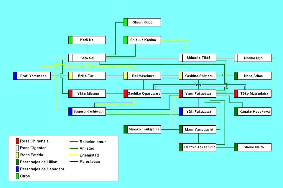 Sólo tres estudiantes del colegio tienen el rango de Rosa, que peculiarmente tienen nombres de especies de rosas de diferentes colores (rojo, blanco y amarillo), según la nomenclatura binominal: Rosa Chinensis (ロサ・キネンシス, Rosa Kinenshisu; 紅薔薇さま, Benibara-sama) que representa a la familia de las rosas rojas, Rosa Gigantea (ロサ・ギガンティア, Rosa Gigantia; 白薔薇さま, Shirobara-sama) que representa a la familia de las rosas blancas; y Rosa Fœtida (ロサ・フェティダ, Rosa Fetida; 黄薔薇さま, Kibara-sama) que representa a la familia de las rosas amarillas.