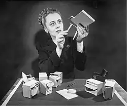- ↑ a b «Flexible Desk: Austrian actress revolutionizes familiar features of U.S. Offices». Life. 26 de abril de 1948.