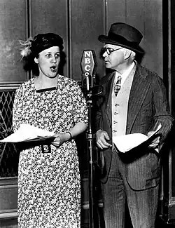 ![]() Jordan con su marido Jim Jordan, interpretando a Fibber McGee y Molly McGee en 1937 | ||
