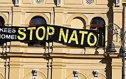 - ↑ Daniel Vražda (29 de agosto de 2014). «Kotleba vyvesil v Bystrici transparent Stop NATO» [Kotleba colocó en Bystrica una pancarta con el mensaje Stop NATO]. Naša Bystrica (SME) (en eslovaco) (Petit Press, a.s.). Consultado el 11 de marzo de 2016.