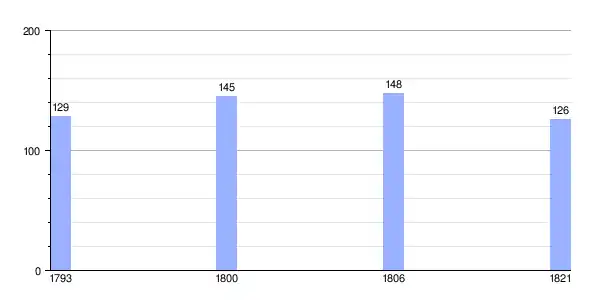 | Gráfica de evolución demográfica de Marignat entre 1793 y 1821 |