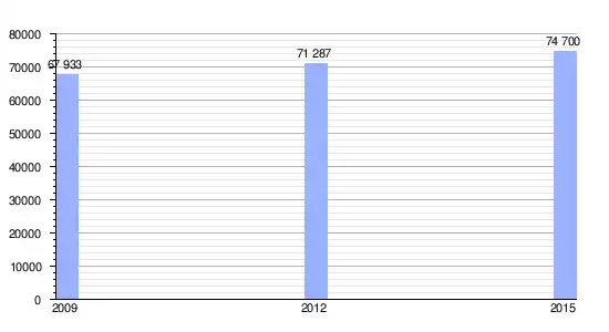 Los datos demográficos contemplados en este gráfico de la comuna de Marigot[4][5][6] son estimaciones que se han cogido de 2009 a 2015 de la página del Instituto Haitiano de Estadística e Informática (IHSI).