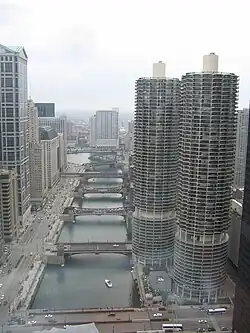 ![]() Marina City desde un puente sobre el Río Chicago | ||