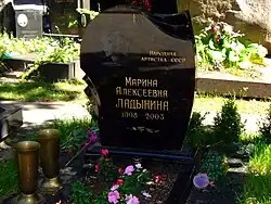 Marina Ladínina murió de un infarto el 10 de marzo de 2003 y fue enterrada en el cementerio Novodévichi en Moscú.[1][3]