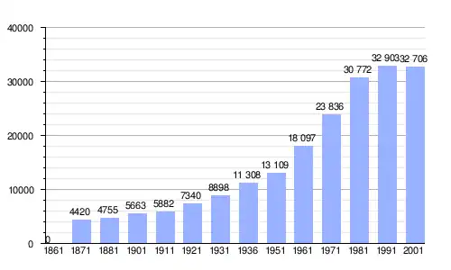| Gráfica de evolución demográfica de Marino entre 1861 y 2001 |