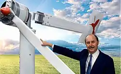 - ↑ a b Castellanos, Edwin (24 de enero de 2014). «Wind Turbine Pioneers Lobbying for Futures Success» (en inglés). Archivado desde el original el 6 de junio de 2014. Consultado el 5 de junio de 2014.