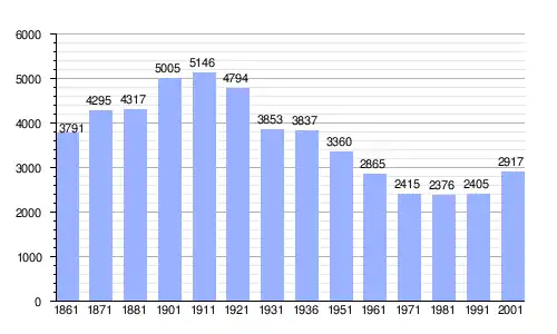 | Gráfica de evolución demográfica de Marliana entre 1861 y 2001 |