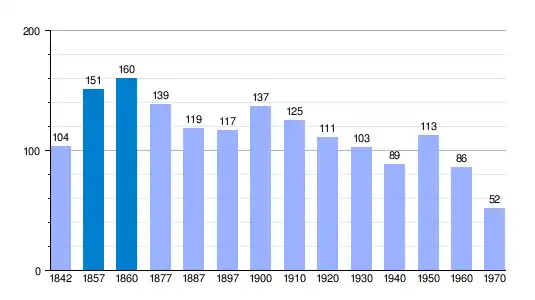 | Gráfica de evolución demográfica de Marmellar de Arriba[1] entre 1842 y 1970 |