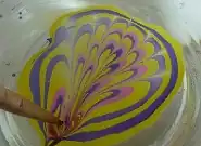 Después de que la capa base se haya secado, se coloca cinta adhesiva alrededor de los dedos para recoger el exceso de esmalte de uñas después del veteado. Se eligen una o dos gotas de laca de color para el diseño y se agregan a una taza de agua limpia. Las gotas crearán un círculo en la superficie del agua. El siguiente color se agrega encima del círculo creado por la gota anterior. El patrón resultante está listo para su aplicación en la uña, pero aún se puede modificar con una varilla para crear diferentes formas. La uña se sumerge en el patrón en el agua y se mantiene bajo el agua mientras se usa un hisopo para «agarrar» el esmalte restante.[6]
