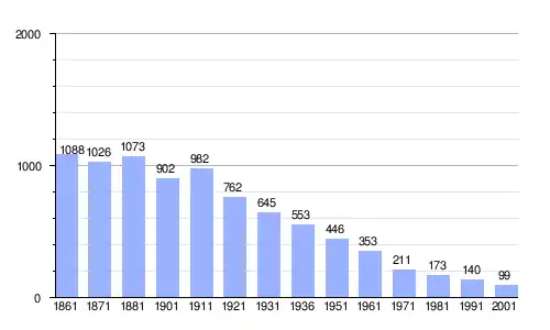 | Gráfica de evolución demográfica de Marmora entre 1861 y 2001 |