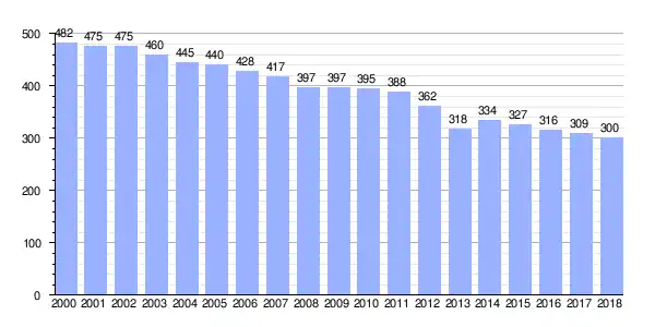 | Gráfica de evolución demográfica de Maroñas[3] entre 2000 y 2018 |