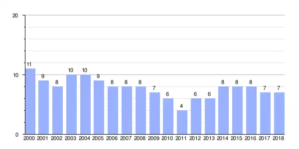 | Gráfica de evolución demográfica de Maroxo de Abaixo entre 2000 y 2018 |