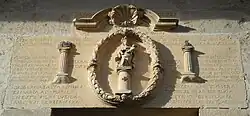 - Parte superior y central del dintel: Año 1723. Hercules en dos colunas puso fin a sus victorias. Yo en una aspiro a más gloria. Plus Ultra. Per diem in columna Nubis, per noctem in columna Ignis. Ex Libro Exodi cap XIII vers XX. Ex Libro Exodi, cap XIII vers XXI. Pulcra ut luna electa ut sol.