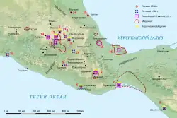 - El Corregimiento de Coyoacán, de 550 km², en el actual México, D. F.[17] incluyó Coyoacán, 34 aldeas, entre otras Mixcoac, San Agustín de las Cuevas, San Ángel, Churubusco y Tacubaya y 5 haciendas cuyo territorio abarcaba desde Cuajimalpa y llegaba hasta la sierra de las Cruces, en dirección este-oeste y, al sur, comprendía el pueblo de Santo Tomás Ajusco.