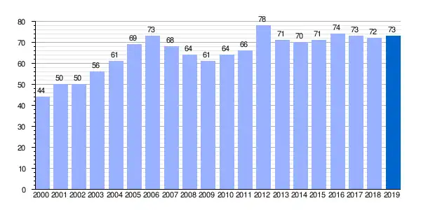 | Gráfica de evolución demográfica de Marquina[3] entre 2000 y 2019 |