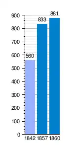 | Gráfica de evolución demográfica de Marrón[1] entre 1842 y 1860 |