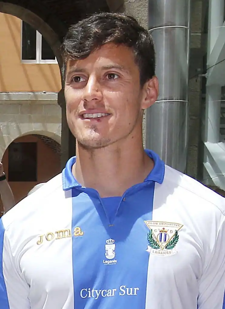 En la temporada 2013-14 vistió la casaca del Leganés en 34 oportunidades, en las cuales siempre fue incluido en la formación inicial. Sólo fue reemplazado en dos ocasiones y, en ambas, lo sustituyeron en el segundo tiempo. En total, jugó 3404 minutos y marcó tres goles contra la S. D. Huesca, Getafe C. F. "B" y Lleida Esportiú; este último le dio a su equipo el pasaje a la final por el ascenso frente al C. E. L’Hospitalet. Recibió seis amonestaciones y fue expulsado cuatro veces (una por roja directa y tres por doble amonestación).