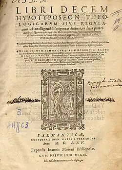 Una obra de mayor ambición dio a luz en Salamanca en 1565: los Hypotyposeon theologicarum, introducción a las Sagradas Escrituras en diez libros en los que defendía la necesidad de recurrir a las ciencias auxiliares, como la gramática, la geografía y la historia, para interpretar los pasajes oscuros del Antiguo Testamento y no quedarse solo con la patrística.[11] En carta al obispo de Plasencia fechada el 20 de marzo de 1572, a poco más de dos semanas de la detención de Gaspar de Grajal, de la que informaba al obispo, y solo unos días antes de ser arrestado él mismo, escribía de sus Hypotyposeon, tras mencionar como acusadores al maestro León de Castro y a fray Bartolomé de Medina: