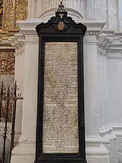 Falleció con ochenta años de edad el 25 de febrero de 1719. Según había pedido, sus restos se depositaron a los pies del altar de Santiago de la catedral, sin ningún signo que señalara la sepultura. Posteriormente se colocó una lápida en una pilastra cercana con una extensa inscripción en latín redactada por José de Mena. Hace unos años, se ha marcado con una cruz esculpida sobre una loseta blanca, el lugar de la sepultura.