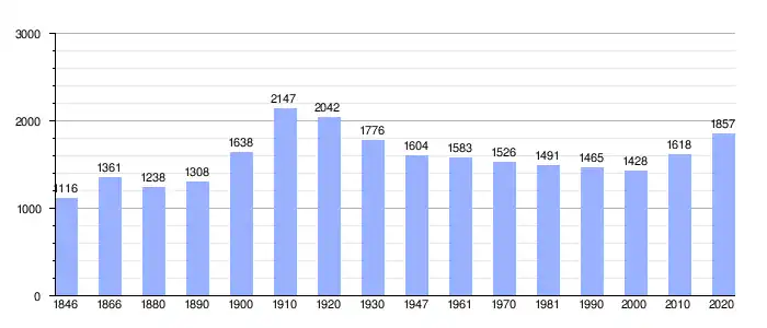 | Gráfica de evolución demográfica de Martelange entre 1846 y 2020 |
