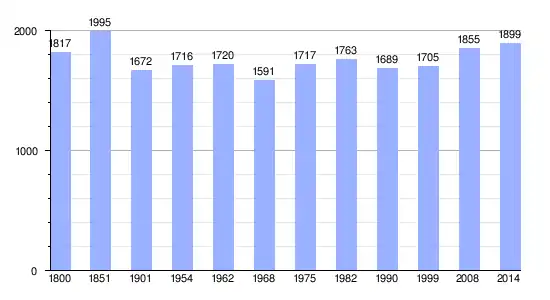 Los datos demográficos contemplados en este gráfico de la comuna de Martigné-Briand[4] se han cogido de 1800 a 1999 de la página francesa EHESS/Cassini, y los demás datos de la página del INSEE.[5]