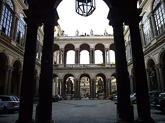 También es obra suya la torre del Palazzo Senatorial del Capitolio, en dos órdenes y de mayor altura que la proyectada originalmente por Miguel Ángel.