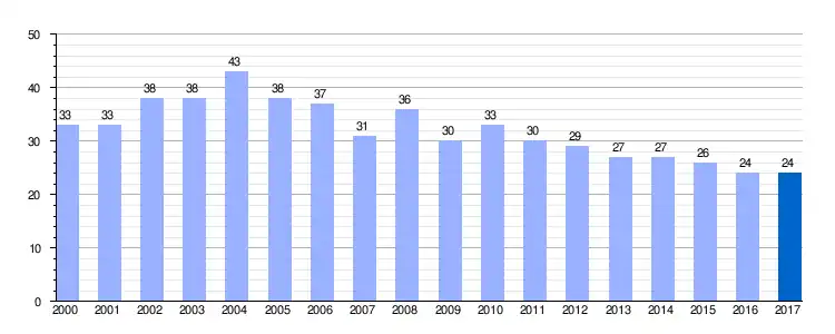 | Gráfica de evolución demográfica de Masa entre 2000 y 2017 |