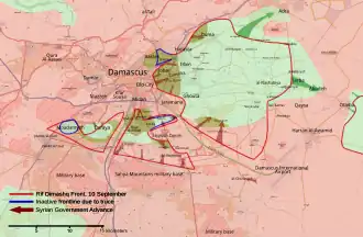 ![]() Situación de Damasco y sus alrededores en noviembre de 2013. Adra se encuentra en el noreste del mapa. | ||