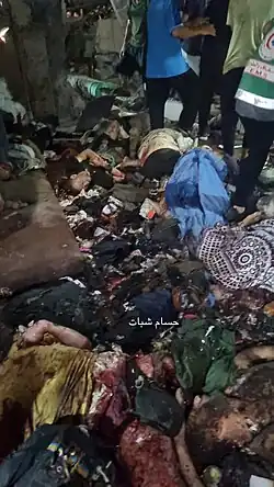 El 10 de agosto de 2024, aproximadamente a las 4:40h[33] durante la oración matinal del alba en la escuela Al-Tabaín, ubicada en el barrio de Al Daraj al este de la ciudad de Gaza, que albergaba a unos 6000 refugiados y desplazados internos palestinos, pertenecientes a 350 familias refugiadas en el complejo de la escuela, tres bombas israelíes impactaron en el edificio, provocando el derrumbe de la estructura y un incendio que destruyó el edificio.[9] Según testigos presenciales, no se dio ninguna advertencia antes del ataque.[34] El número de palestinos que en ese momento se encontraban en la escuela fue muy alto debido a que ocurrió durante la oración del Fajr y testigos oculares afirmaron que aproximadamente 250 personas estaban dentro de la sala de oración en el momento de los ataques.[10][35]