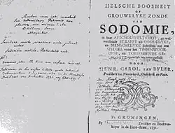 5. a b Andrew Wikholm (1998). «Dutch Sodomite Massacre». gayhistory.com (Internet Archive) (en inglés). Archivado desde el original el 26 de junio de 2008. Consultado el 21 de noviembre de 2009.
