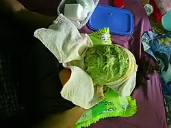 - En polvo: está compuesta generalmente por minerales como el caolín o la arcilla, sales y elementos refrescantes. Deben disolverse en una loción para darles consistencia hasta obtener una masa que una vez aplicada esperaremos 20 minutos para retirarla. Las sales y los principios activos que contienen, estimulan la circulación sanguínea produciendo un efecto refrescante y reafirmante al evaporarse las sustancias líquidas de la loción (tónico). Para pieles secas se pondrá una loción hidratante. Para pieles sensibles se preparará una loción descongestiva con azuleno. Para pieles acnéicas y grasas se usará una loción con azufre o que sea astringente.