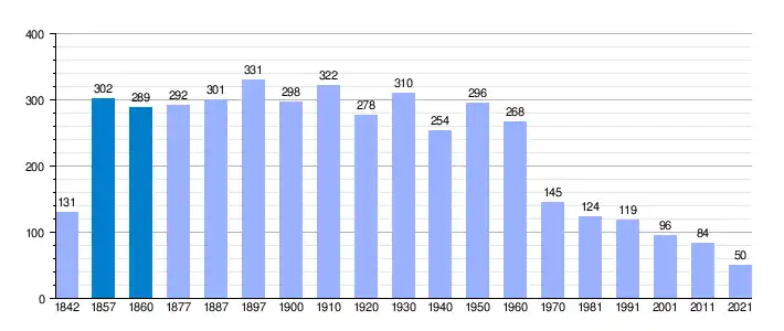 | Gráfica de evolución demográfica de Masegoso de Tajuña[3] entre 1842 y 2021 |