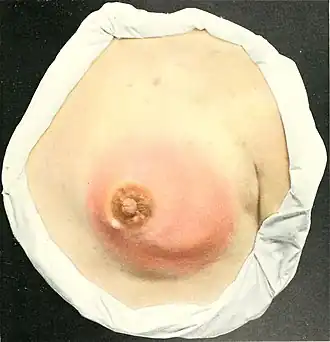 - ↑ a b c PÉREZ, Juan Antonio, BARRIENTOS S, Luis, HENNING L, Enrique et al. Procesos inflamatorios benignos de la mama. Cuad. cir. (Valdivia). [online]. dic. 2000, Vol. 14, No. 1 [citado 29 diciembre de 2007], pp. 70-79. Disponible en la World Wide Web: [3] Archivado el 11 de abril de 2008 en Wayback Machine.. ISSN 0718-2864.