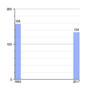 | Gráfica de evolución demográfica de Mastrante entre 1993 y 2017 |