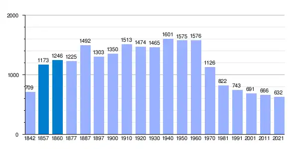| Gráfica de evolución demográfica de Matilla de los Caños del Río[9] entre 1842 y 2021 |