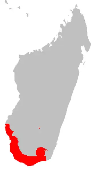 Es una ecorregión de desierto con una extensión total de unos 44.300 kilómetros cuadrados, que ocupa la franja costera sur y suroeste de la isla. Limita, de este a oeste, con la selva de tierras bajas de Madagascar, la selva subhúmeda de Madagascar y el monte suculento de Madagascar. Sus límites septentrionales están definidos en el río Mangoky y en la cresta de las montañas Anosyennes.