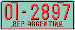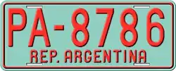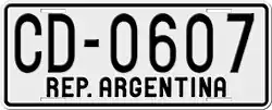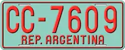 | Cuerpo consular | CC-1234 | Son de color verde con marco y letras rojas. Se colocan únicamente en los vehículos de Cónsules y Vicecónsules de los países acreditados en Argentina. |